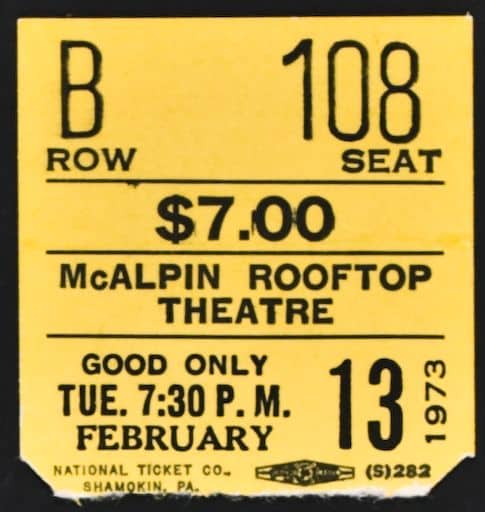 Ayn Rand’s ticket to see Penthouse Legend at the McAlpin Rooftop Theatre in New York.