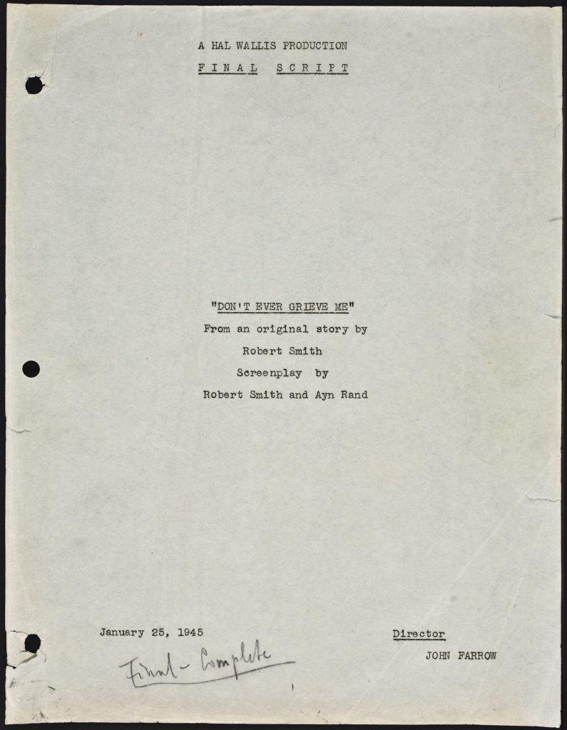 Screenplay for “Don’t Ever Grieve Me,” the original title of the film You Came Along