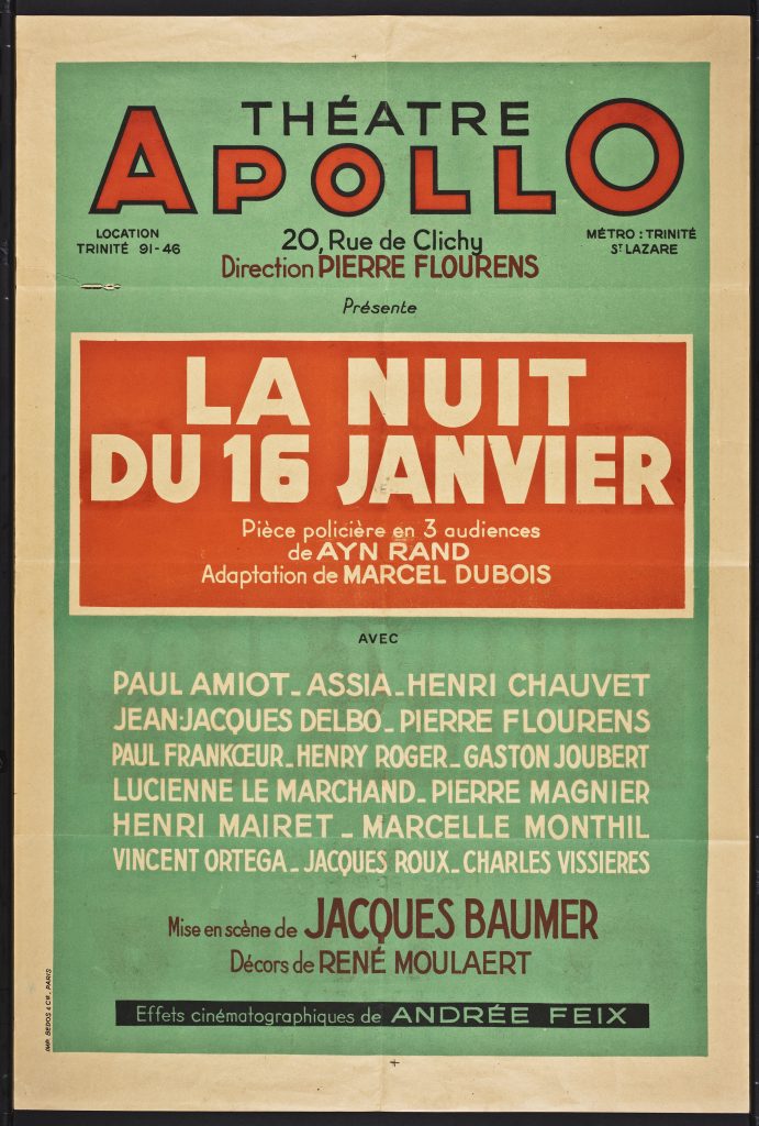 Poster for La Nuit du 16 Janvier (Night of January 16th) at the Apollo Theatre in Paris