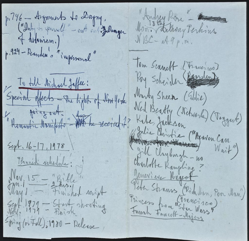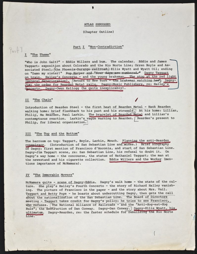 Ayn Rand’s annotated chapter outline for a potential adaptation of Atlas Shrugged