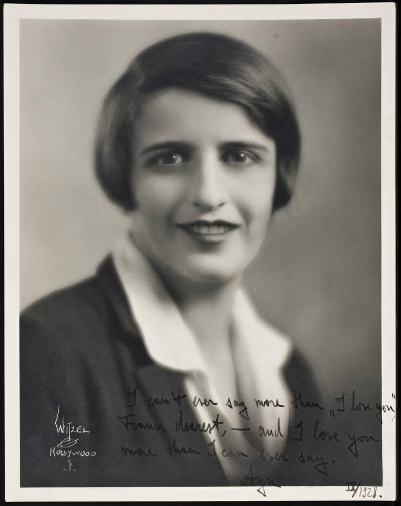 Portrait of Ayn Rand by Witzel, inscribed to Frank O’Connor: “I can’t ever say more than ‘I love you,’ Frank dearest,—and I love you more than I can ever say.”