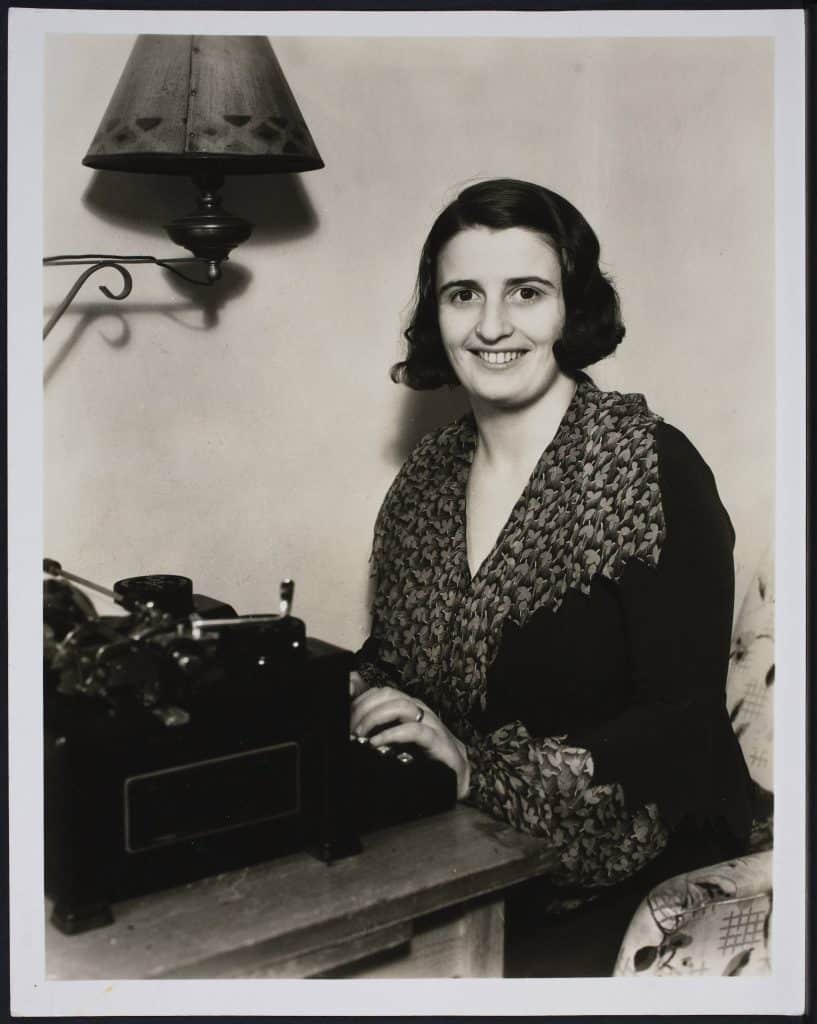 Ayn Rand at typewriter