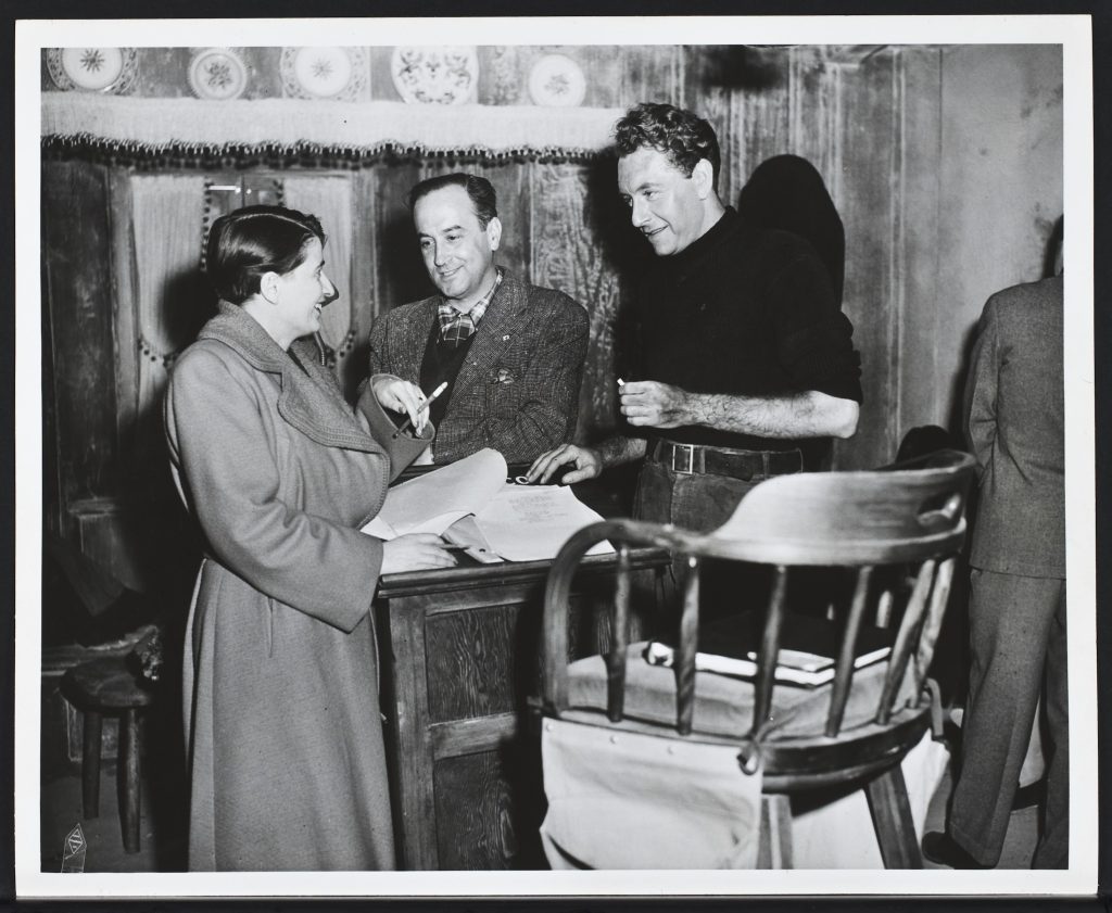 Ayn Rand on the set of The Conspirators with director Jean Negulesco and lead actor Paul Henreid
