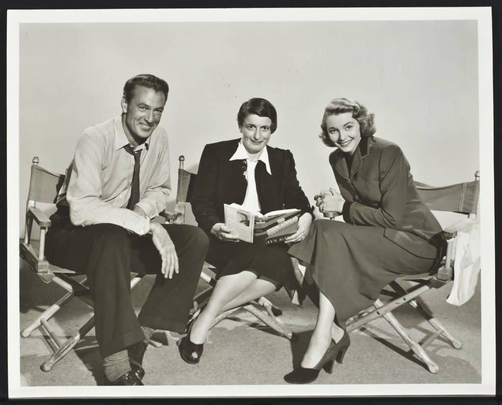 Ayn Rand on the set of The Fountainhead with Gary Cooper and Patricia Neal