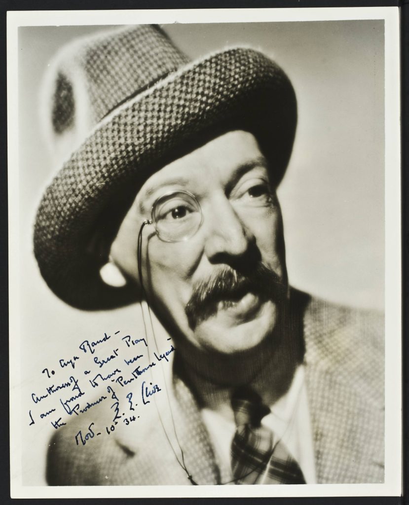 Signed photograph of E.E. Clive as Inspector Sweeney, also producer and director of Woman on Trial. The portrait features an inscription to Ayn Rand: “Authoress of a great play. I am proud to have been the producer of ‘Penthouse Legend.'”